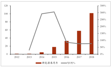 新能源電動(dòng)汽車產(chǎn)業(yè)實(shí)現(xiàn)快速發(fā)展,2018年整體上揚(yáng)趨勢(shì)不變。過(guò)去幾年,我國(guó)新能源電動(dòng)汽車行業(yè)呈現(xiàn)快速發(fā)展勢(shì)頭,伴隨國(guó)家接連出臺(tái)的一系列配套補(bǔ)貼優(yōu)惠政策,我國(guó)新能源電動(dòng)汽車行業(yè)快速實(shí)現(xiàn)產(chǎn)業(yè)化和規(guī)?;娘w躍式發(fā)展,2012-2018年新能源電動(dòng)汽車銷量CAGR達(dá)到113%。