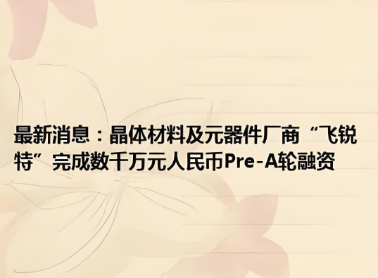 近日,晶體材料及元器件廠商成都飛銳特科技有限公司宣布完成數(shù)千萬元人民幣Pre-A輪融資,本輪融資由毅達資本領(lǐng)投,蘇高新創(chuàng)投、道翼資本參投。老股東北極光創(chuàng)投于2023年9月完成天使輪投資,本輪繼續(xù)追加投資。...