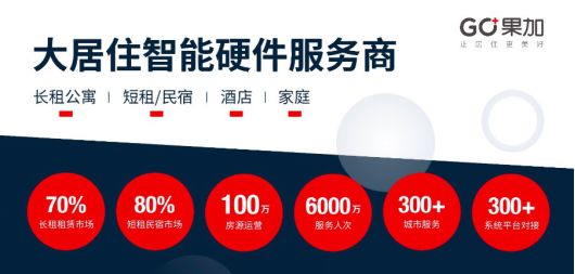 經(jīng)過5年發(fā)展,果加以智能門鎖為中心,業(yè)務(wù)已覆蓋包括長租公寓、短租民宿、酒店等在內(nèi)的商用居住和家用居住全場景。