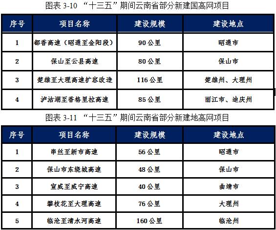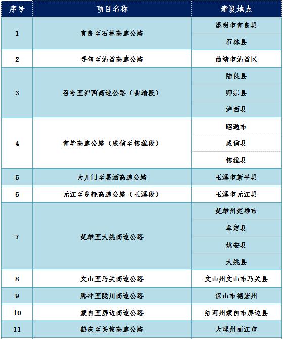 2020年3月6日,云南省發(fā)改委發(fā)布了《云南省發(fā)展和改革委員會關(guān)于印發(fā)云南省2020年“四個一百”重點建設(shè)項目計劃的通知》(云發(fā)改投資〔2020〕210號),《通知》中涉及高速公路類的項目如下: