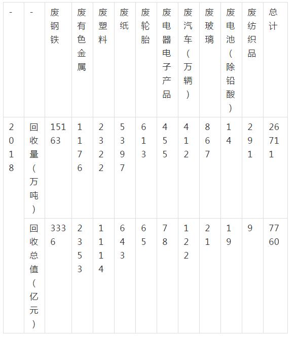 2018年再生資源回收總值估算