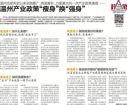 市委市政府印發(fā)《關(guān)于公布市本級產(chǎn)業(yè)政策清理結(jié)果的通知》,公布了150個產(chǎn)業(yè)政策文件清理結(jié)果,上百個政策被修改廢止。“這是溫州有史以來范圍最廣、跨度最長、力度最大的一次產(chǎn)業(yè)政策清理。...