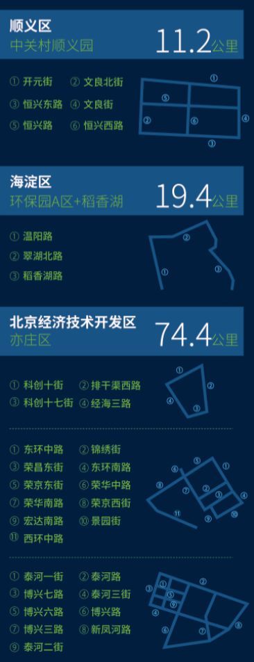 目前北京市在順義區(qū)、海淀區(qū)和經(jīng)濟(jì)技術(shù)開發(fā)區(qū)確定了33條共計(jì)105公里的首批開放測(cè)試道路,這些測(cè)試道路都選擇在五環(huán)外,避開住宅區(qū)、辦公區(qū)、醫(yī)院、學(xué)校等人流量、車流量集中的區(qū)域,測(cè)試時(shí)段為白天,但避開早晚高峰時(shí)段。