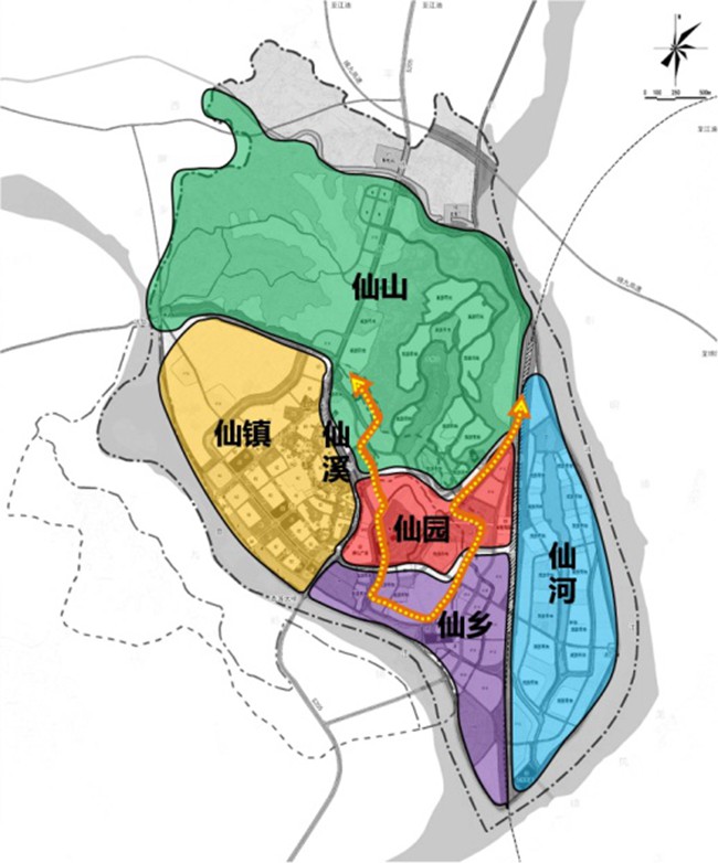 ??在全面分析規(guī)劃地空間與資源基礎(chǔ)上,提出“一核一帶四區(qū)”的空間布局結(jié)構(gòu),打造仙園——詩仙文化朝圣核心區(qū);仙溪——雙溪游仙風(fēng)情發(fā)展帶;仙鄉(xiāng)——醉仙文化休閑區(qū);仙山——花月仙境度假區(qū)、仙河——逍遙仙河養(yǎng)生區(qū);仙鎮(zhèn)——青蓮詩歌生活鎮(zhèn)四區(qū),形成一核引領(lǐng)、一帶驅(qū)動、四區(qū)共進(jìn)空間布局結(jié)構(gòu)。