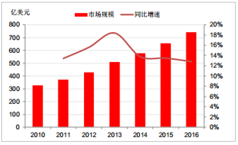 從市場(chǎng)規(guī)模來看, 汽車電子千億美元市場(chǎng)。2016 年全球汽車電子規(guī)模達(dá)到 2348 億美元, 2012~2016 年 CAGR 達(dá)到 9.8%。從中國市場(chǎng)來看, 2015 年中國汽車電子市場(chǎng)規(guī)模達(dá)到 657億美元,同比增長(zhǎng) 13.00%,預(yù)計(jì)到 2021 年市場(chǎng)規(guī)模有望突破 1000億美元。中國和美國占據(jù)了汽車電子市場(chǎng)最大的市場(chǎng)份額,其次是歐洲與日本,而目前汽車電子行業(yè)增長(zhǎng)的主要?jiǎng)恿碜灾袊?、印度、南美等發(fā)展中國家和地區(qū)。