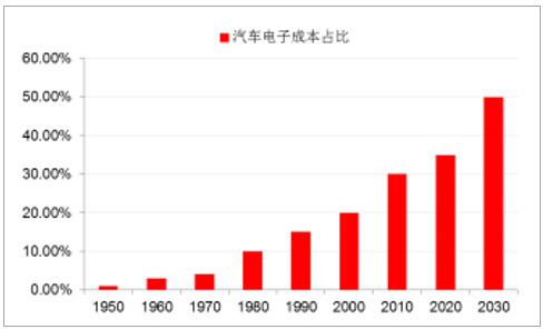 汽車技術(shù) 70%左右的創(chuàng)新源自于汽車電子,汽車電子技術(shù)的應(yīng)用程度已經(jīng)成為衡量整車水平的主要標(biāo)志,電子產(chǎn)品在整車的價(jià)值量占比不斷提升,目前單臺(tái)汽車的汽車電子價(jià)值量占比從 1950 年的 1%提升到目前的 20%~35%,主要因?yàn)槠囯娮訌?fù)雜度和功能不斷提高,從最早期的車載無線電、電子點(diǎn)火裝置到如今的安全控制系統(tǒng)、動(dòng)力控制系統(tǒng)等多種機(jī)電一體化單元的組合,系統(tǒng)復(fù)雜度不斷提高,單體價(jià)值量不斷提升。未來隨著 ADAS、 TPMS、虛擬儀表等汽車電子新品不斷涌現(xiàn),汽車電子有望迎來新的增量市場(chǎng)。