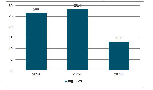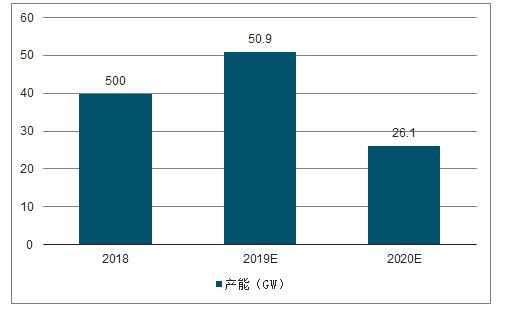 隨著光伏系統(tǒng)建設(shè)成本的逐步降低,終端光伏市場(chǎng)新增裝機(jī)規(guī)模不斷提升,帶來(lái)對(duì)電池片產(chǎn)能的擴(kuò)大需求。對(duì)全球光伏電池片產(chǎn)能增長(zhǎng)的情況進(jìn)行統(tǒng)計(jì)和預(yù)估,預(yù)計(jì)2019-2020年全球光伏電池產(chǎn)能將分別達(dá)到175GW、187GW,較上一年分別提升10.76%、6.86%。