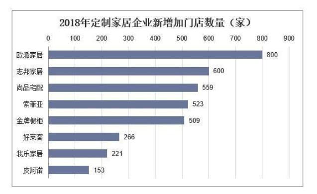 從總的門店凈增加數(shù)量來看,2018年歐派家居、志邦家居、尚品宅配、索菲亞、金牌櫥柜、好萊客、我樂家居、皮阿諾分別增長800家、600家、559家、523家、509家、266家、221家、153家門店。志邦、金牌的開店數(shù)較多,主要是新增的衣柜品類經(jīng)銷商增加加多所致。