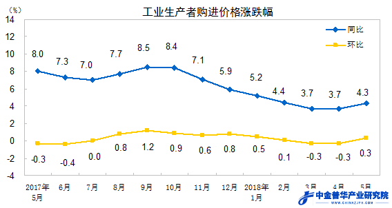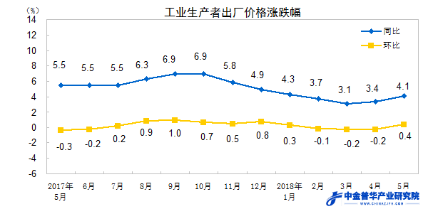 2018年5月份工業(yè)生產者出廠價格同比上漲4.1%