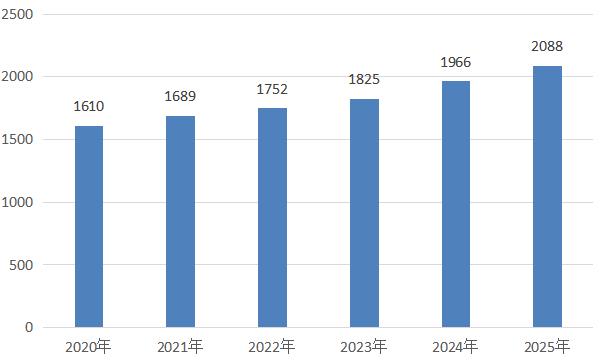 2020-2025年國(guó)內(nèi)塑料粒子需求量預(yù)測(cè)(萬(wàn)噸)